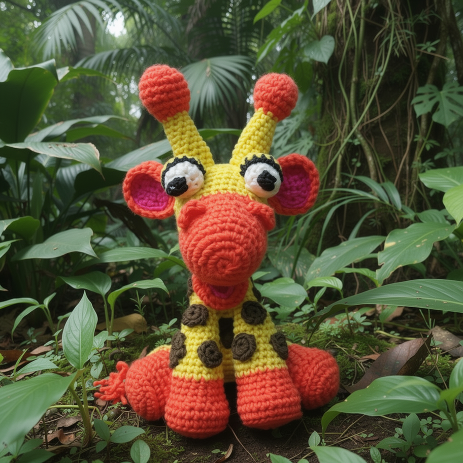 Introducing our adorable crochet Giraffe! pattern! This handmade amigurumi giraffe is perfect for any animal lover or as a unique addition to a nursery or playroom. With its long neck and cute spots, this giraffe is sure to bring a smile to anyone's face. Standing at approximately 12 inches tall, it is the perfect size for little ones to hold and snuggle.Made from soft, acrylic yarn, this giraffe is perfect for cuddling and makes a wonderful gift for children or adults. Bring a touch of safari-inspired charm to your life with our delightful crochet giraffe!